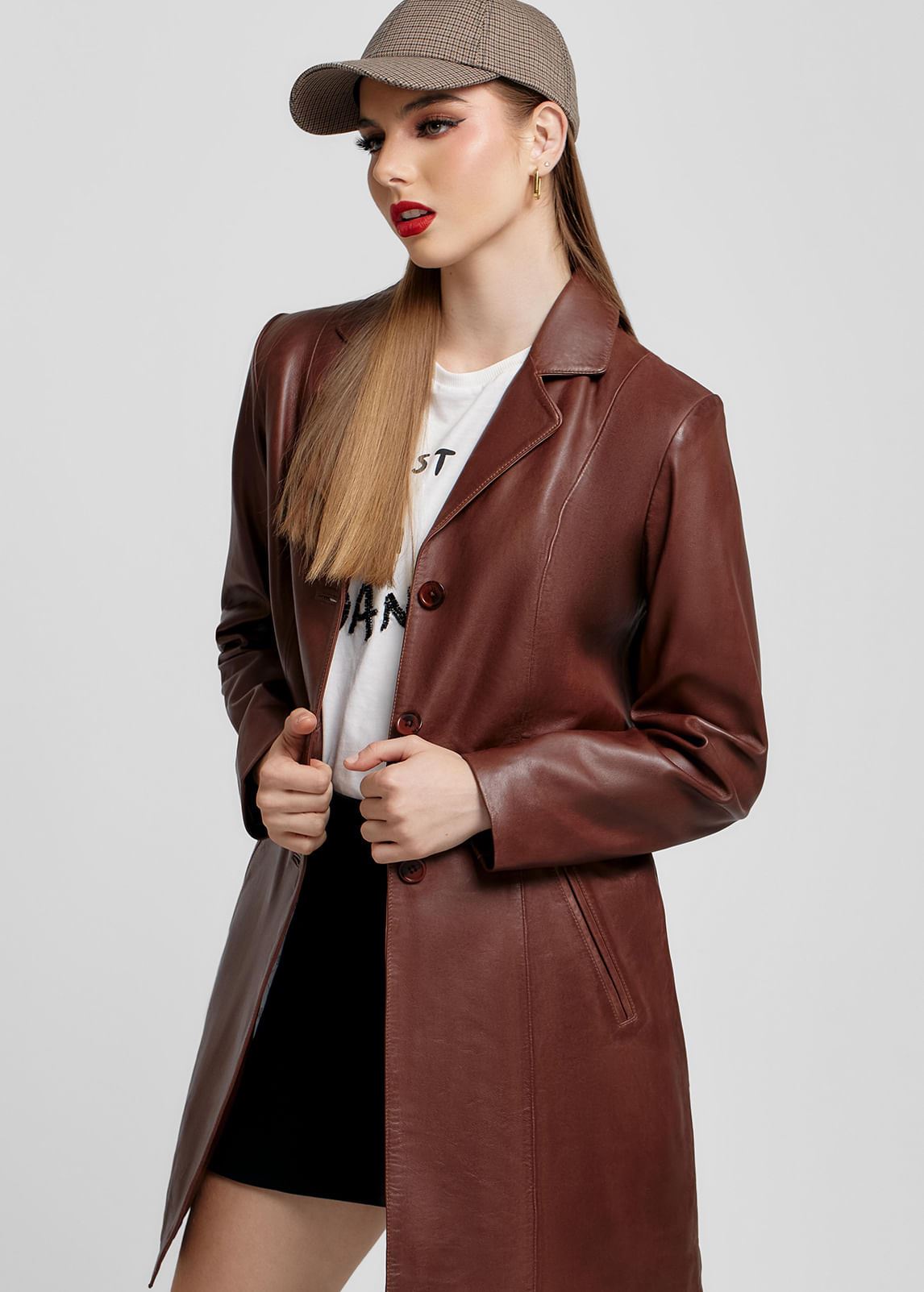 CASACA ENTALLADA DE CUERO CON ACABADO ENVEJECIDO